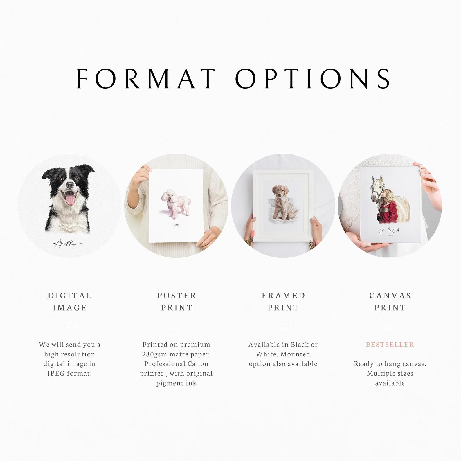 Each portrait is crafted to reflect your pet’s unique charm — with no limits on style.